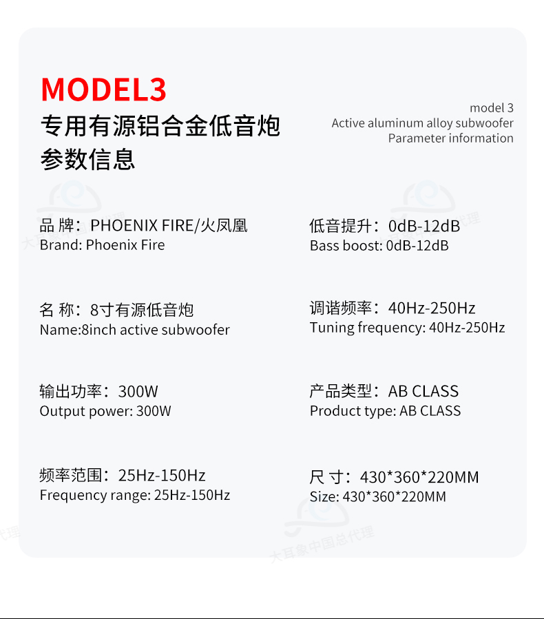 Phoenix Fire火凤凰特斯拉model3专用低音炮有源音响升级喇叭改装