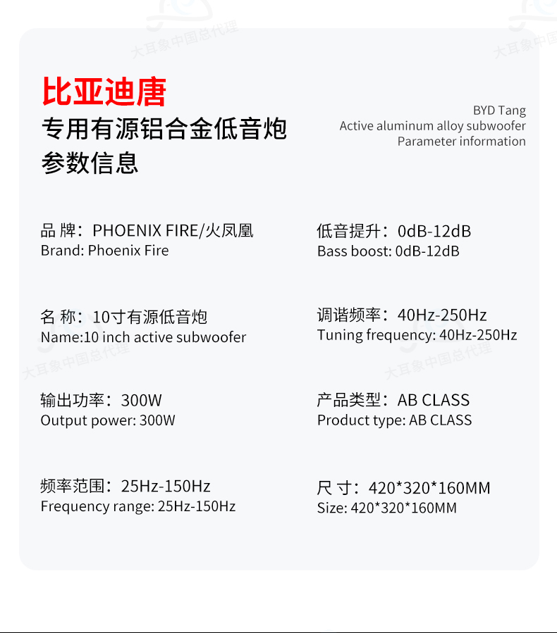 PhoenixFire火凤凰比亚迪唐专用有源低音炮音响大功率喇叭改装