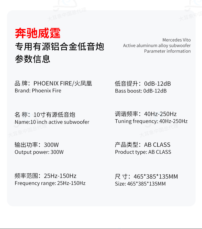 PhoenixFire火凤凰奔驰威霆专用有源低音炮音响大功率喇叭改装